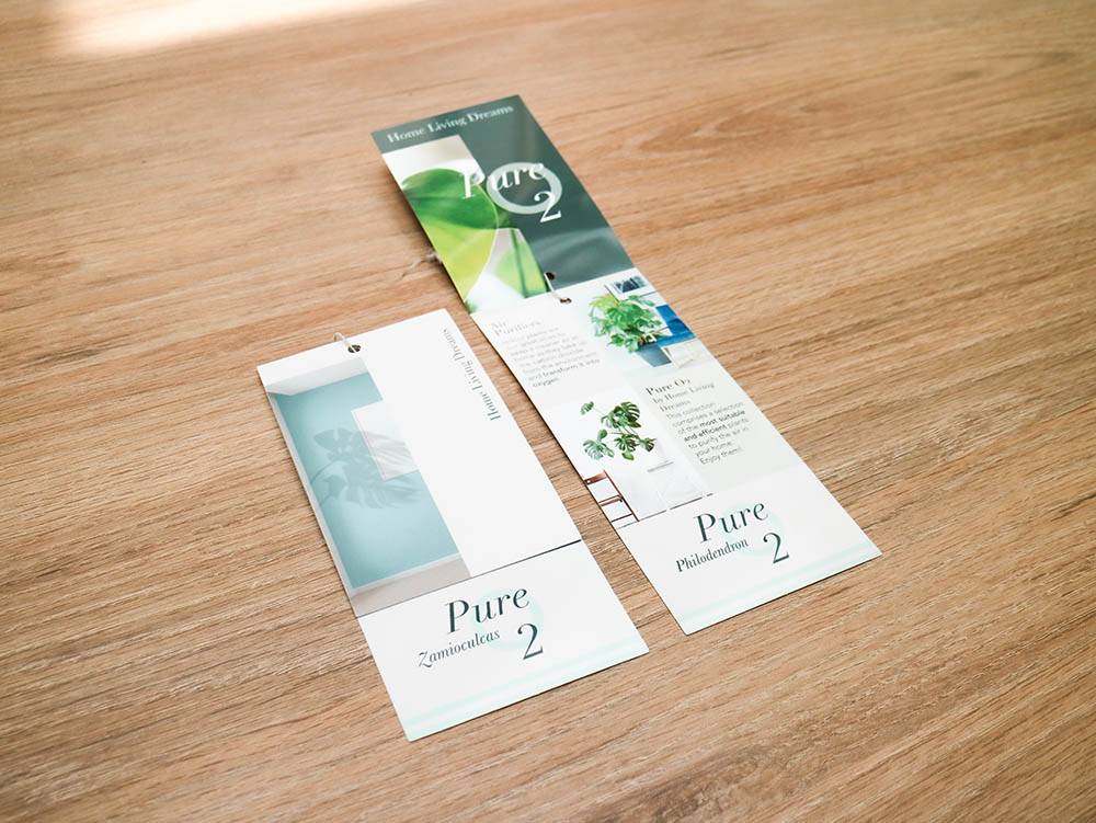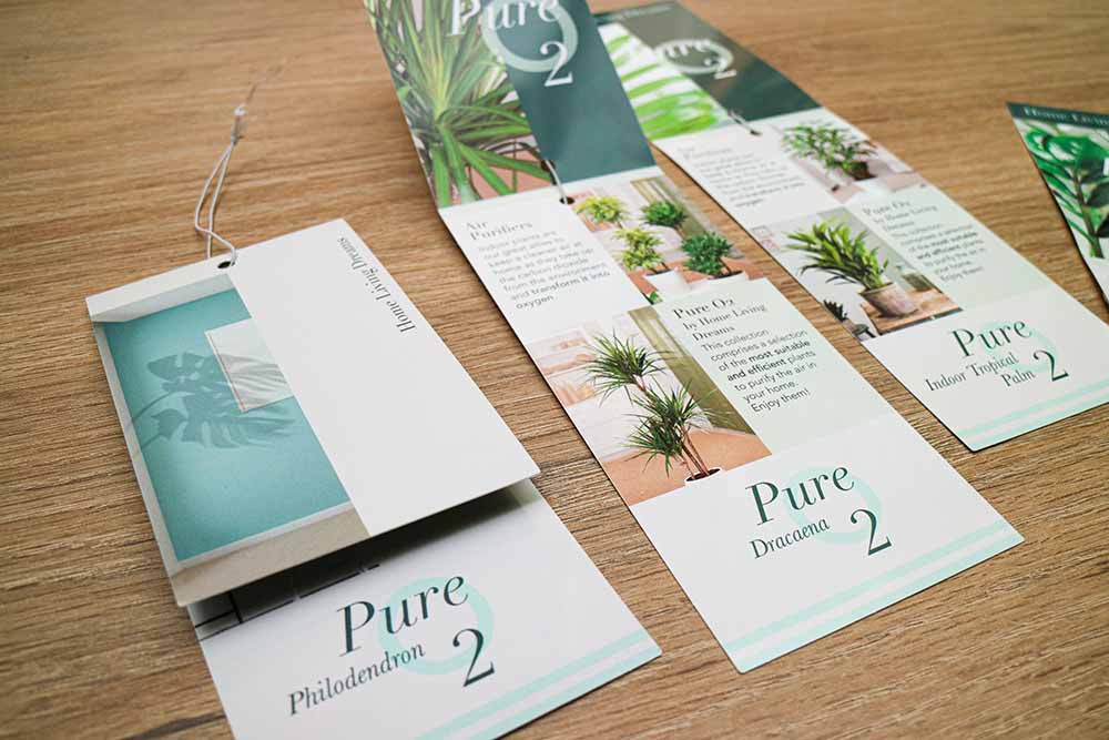Design e produzione di etichette a pendaglio per la collezione di piante da interno Pure O2 del marchio spagnolo CQ Plants.