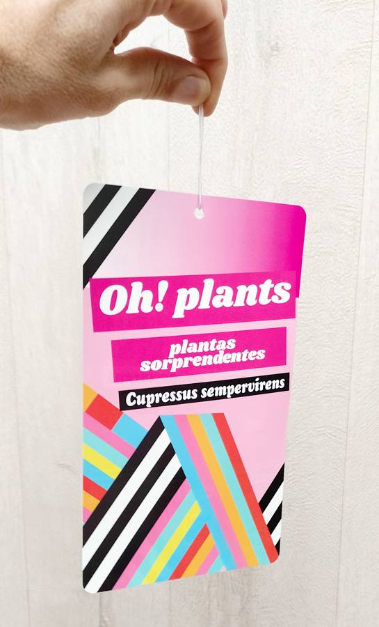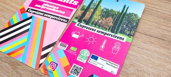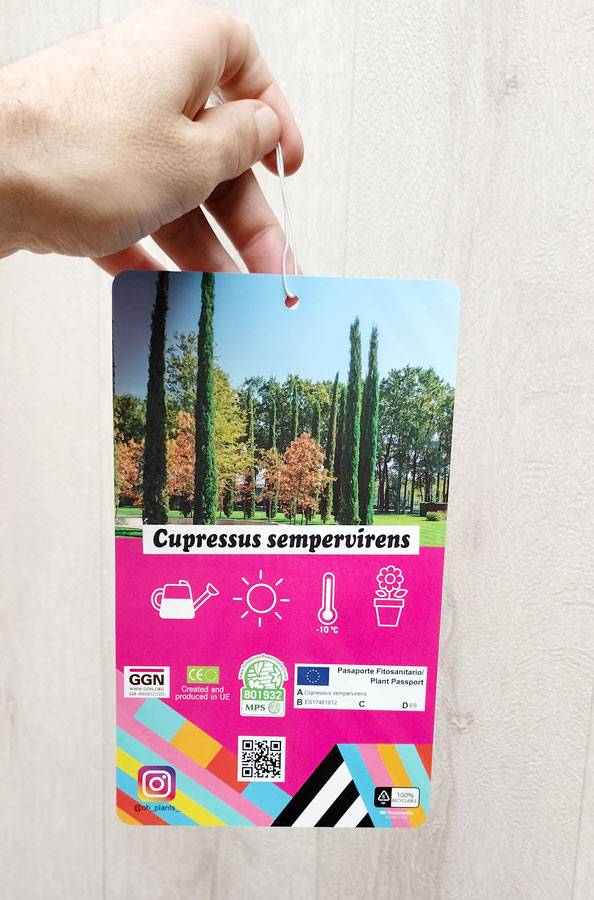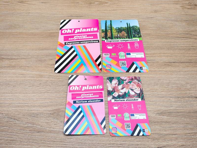 Etichette pendenti di diverse dimensioni che si adattino a specie tanto diverse come Nerium oleander e Cupressus sempervirens.