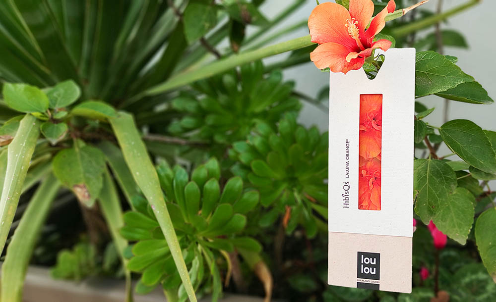 Questo marchio è già stato applicato su alcune etichette per piante create da Floramedia per Rachel & Co per Hibiscus. Queste etichette presentano un design molto curato che invita, grazie a una fustella, a scoprire la foto della pianta e un testo ispiratore. La fustella è fissata tramite una linguetta su misura e l’etichetta si appende con un sistema di autoaggancio.