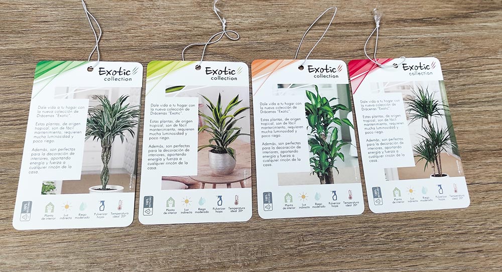Sviluppo per Viveros Las Fresas di un’intera collezione speciale di etichette per la vendita e la promozione delle dracene.