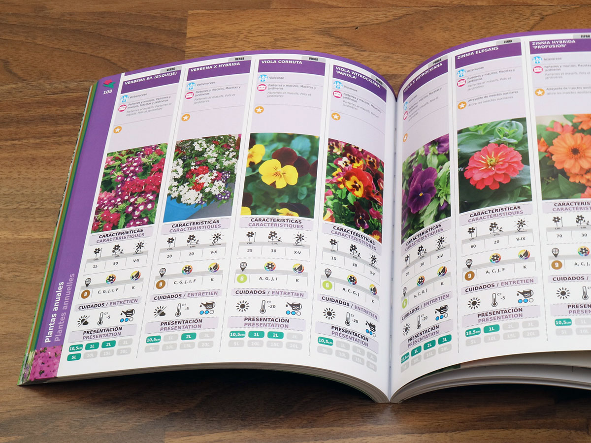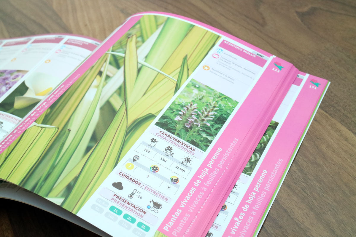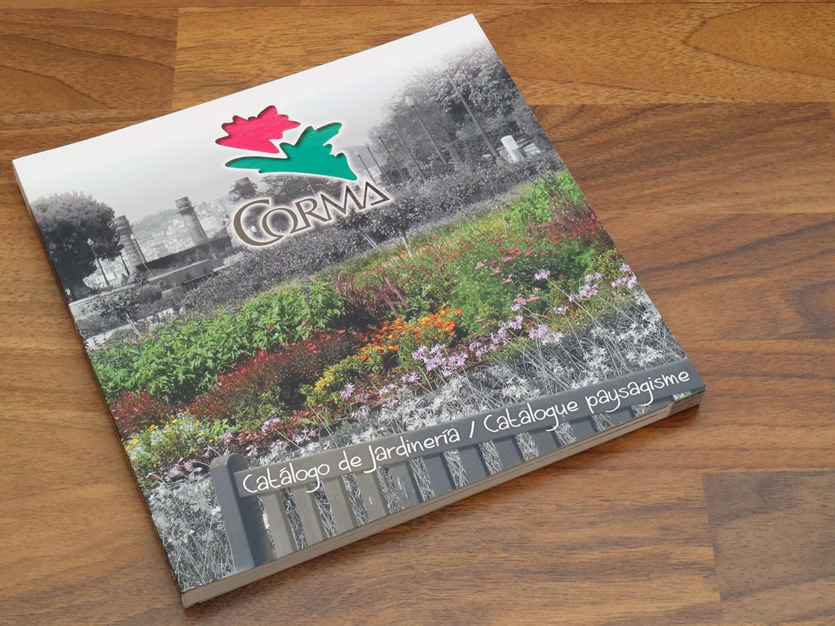 Realizzazione e produzione di un catalogo di 200 pagine, multilingue e con informazioni su circa 650 varietà di piante del catalogo Corma, utilizzate in giardinaggio.